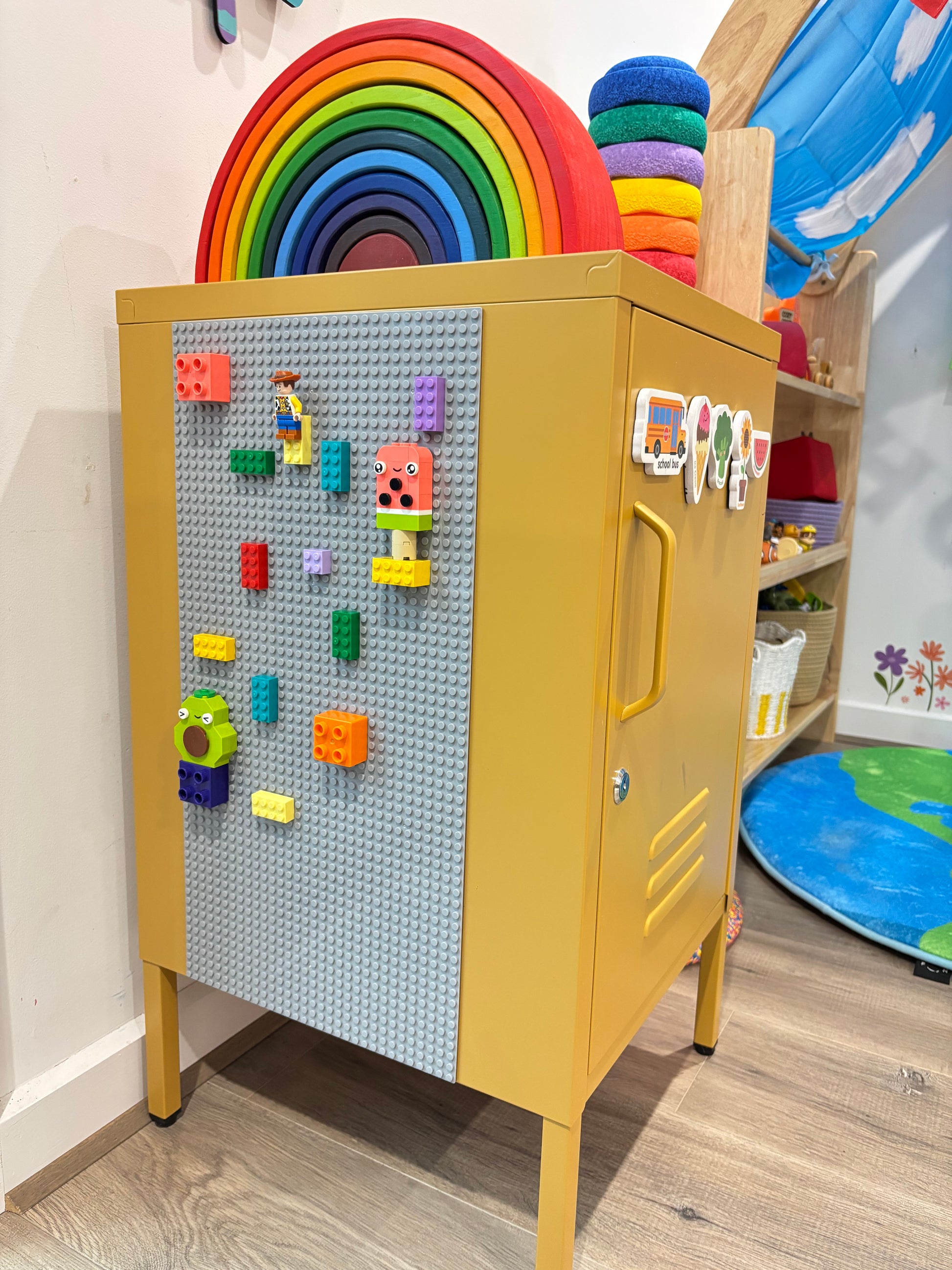 This has totally opened up play, vertical duplo has basically reinvented duplo play for him. The tiles stick very well to the magnet wall!