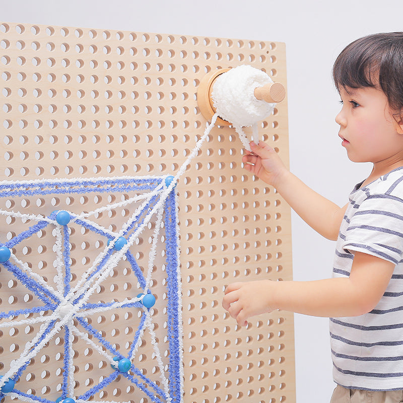 An innovative art and construction toy designed for children ages 3+ that combines colorful rubber bands and connecting lines to create: